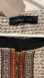 Elegant top with textured black and white fabric. Features colorful patterned accents for a bold look.