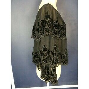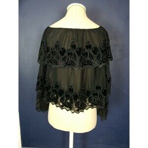 Endless Rose Tiered Appliquéd Black Long Sleeve Mesh Glam top sz Small.Can be worn off the shoulders. Beautiful velvet appliqués. Sleeves are tiered C