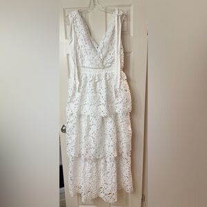 Endless Rose White Lace Midi Tiered Dress Size Large L NWOT Revolve