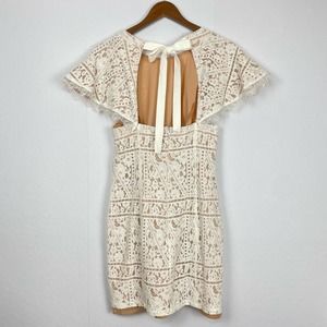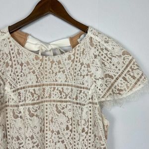 Endless Rose | White Lace Neutral Layering Open Tie Back Flutter Sleeve Dress