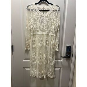 Endless Rose Women Sheer Embroider Lace Bohemian Shift Dress in White Size S NWT