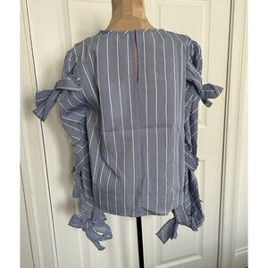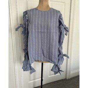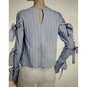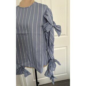 Endless Rose Women's Striped Tie Sleeve Top Blouse Powder Blue Size L