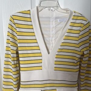 Yellow and white striped long sleeve dress by endless Rose and size small. Zipper back with deep V-neck front. Pockets on the front with buttons removed for more sleep. Excellent condition. Smoke free home.