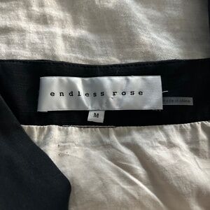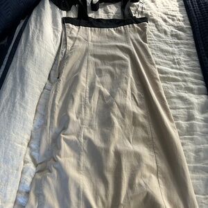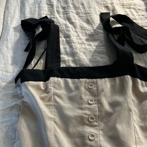 Linen and black midi dress. New without tags. Faux buttons down center. Side zip. Black straps with tie at top of each. Size medium