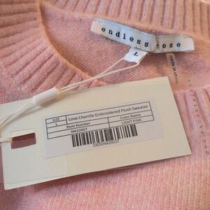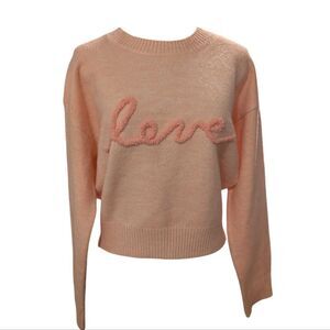 Endless Rose pink Chenille Embroidered Love Sweater women's size large NWT