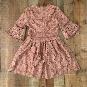 Endless rose all of lace bell sleeves mini dress in blush pink - S