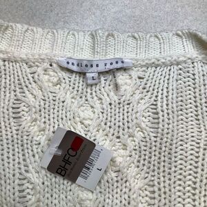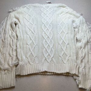 Endless Rose Cable Knit Fringe Sweater Large Ivory Neutral NWT