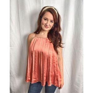 Endless Rose silky top || size small || fits very oversized || pleated || thin straps, high neck ||