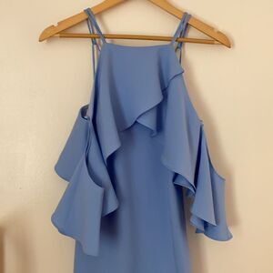 summer, spring, date, brunch, robin, powder, cornflower, pastel, periwinkle, los angeles, trendy, cold-shoulder, off-shoulder, halter, shift
