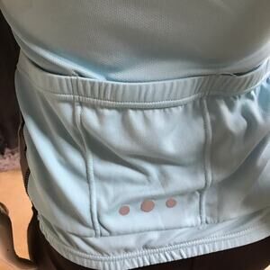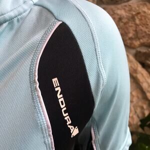 Endura Bike Cycling Short Sleeve Blue 1/4 Zip Shirt with Pockets Women's Size XS. Has tiny mark on one shoulder. Measurements: bust: 17, length in front: 20, length in back: 23
