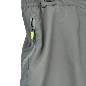 Comfortable and stylish men's gray mountain trail bike shorts with a lot of pockets and snap out bike pad.