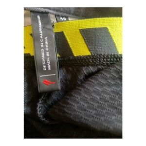 Stay active with these Specialized Enduro Activewear Cycling Shorts. Deflect UV 30+ protection from harmful sun rays. Falls loose near the knee. Interior has fixed padded liner shorts with body geometry mountain chamois for comfort and endurance. Adjustable Velcro waistband. Exterior snap & Velcro closure. Zipper leg pocket. Two deep hand pockets. Stylish gray geometric pattern. Perfect cycling shorts, workouts, or casual wear. Like new condition