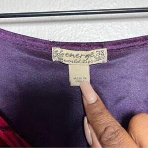 Energe Women Top 3X Red Velvet Burnout Empire Waist Half Sleeve Sequins Art