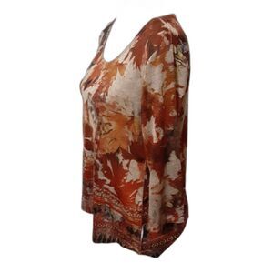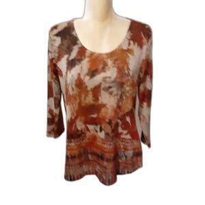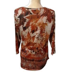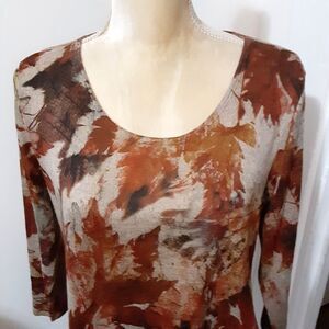Energe world wear Fall tone pullover top 3/4 sleeves leaf pattern sz L