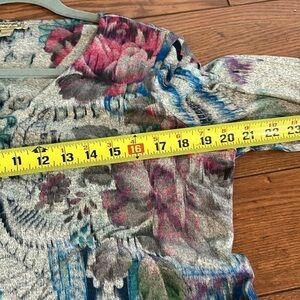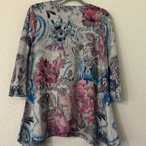 Like new condition. 3/4 sleeve. Polyester/spandex knit.