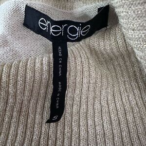 EUC. Energie Juniors' Metallic Cowl-Neck Sweater Dress Cream & Gold Size Small