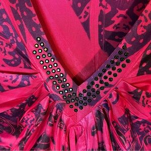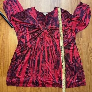 Energie One World Wear Size 2X Babydoll Boho 90's Y2K Beaded V-Neck Flowy Top