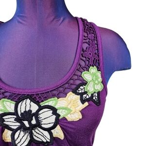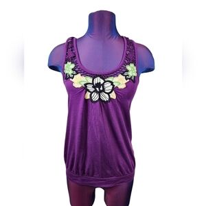 In excellent condition Energie Purple Crocheted Racerback Floral Embroidered Tank Top Women's Small.