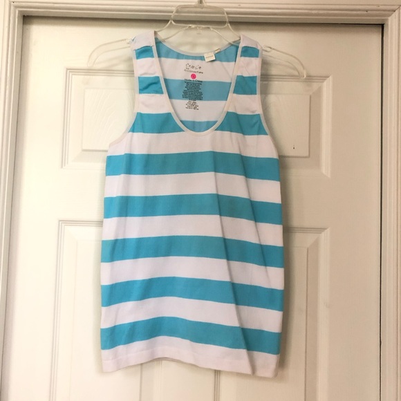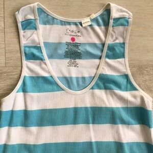 Jr. Women’s Energie Racerback Sleeveless Stripe Athletic Fitness Active Performance Tank Top Shirt.