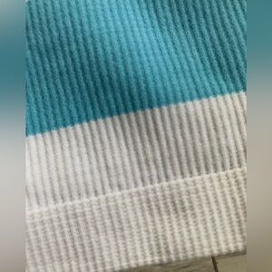 White with Turquoise Blue Stripes.