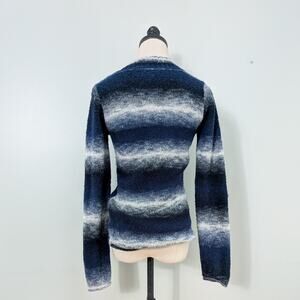 Vintage 90s Y2K V Neck Blanket Ombre Striped Pullover Sweater by Energie - Size Large - Blue & White. Measurements and condition details below — click ‘More’ if hidden.