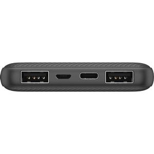 Charge your mobile devices with this Energizer power bank. Energizer UE10044 is the perfect ultra-slim power bank for smartphones, tablets, and more. UE10044 provides 10,000mAh capacity to charge smartphones, tablets, smartwatches, headphones, ear buds, and more. The 10,000mAh battery provides up to 36 hours of power while the two USB 2.1 Type-A ports and Rapid Charge technology deliver power consistently and efficiently to up to two devices at once at 10.5W. Four white LED indicator lights signify the charging status and current battery life. The textured diagonal pattern design prevents slippage, scratches and fingerprints on the surface. The lightweight and ultra slim design fits perfectly in your pocket wherever you go! Energizer PowerSafe Management guarantees against short circuit, overcurrent, overcharge and overdischarge for your power bank and devices. A Micro USB Cable is included for recharging the power bank or charging other devices.