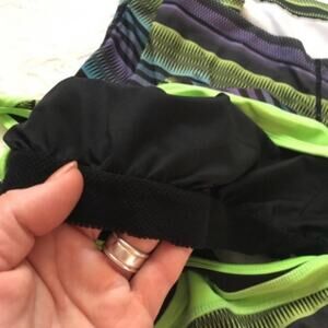 Style: Racer-back workout tank top. Horizontal stripes design.