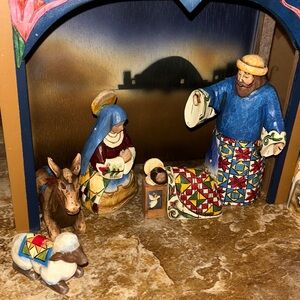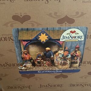 Enesco 2004 JIM SHORE HEARTWOOD CREEK Nativity Set 10 Pc in Box with additional Jim Shore angel 2010 not associated with nativity included. Smoke free home.