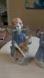 Adorable Enesco angel trio. Each wears a blue robe and plays a musical instrument.