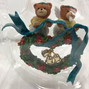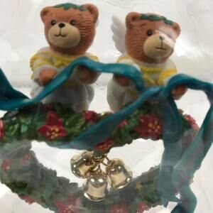 Enesco Treasury of Christmas Ornaments "Bearing Holiday Wishes" Ornament With Box 1990 Lucy & Me Bear Angel Wreath Bells