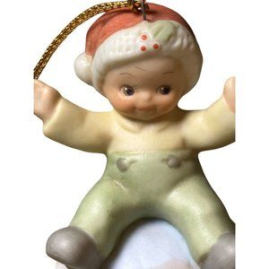 This Enesco Christmas Ornament "Give Yourself A Hug" from 1994 is a charming piece of holiday nostalgia. Made of fine porcelain,