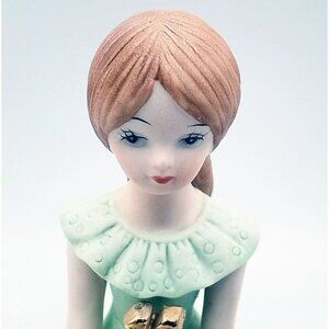 Enesco Growing Up Girls Figure Age 11 Blonde Girl in Green Dress Vintage 5.25 In