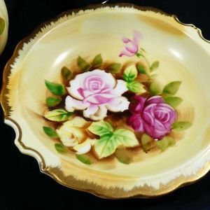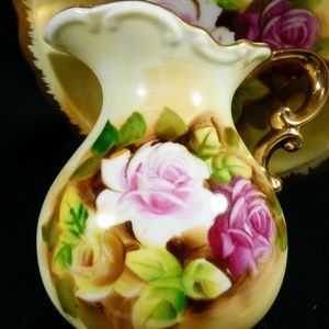 Vintage set of 2 pieces, Hand Painted Roses with Gold trim Pitcher & Bowl porcelain. Victorian style.