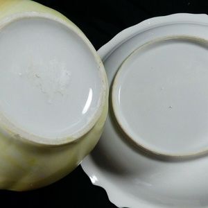 Good over all, no chips or cracks on the pitcher, one chip on the bowl under the rim, as is