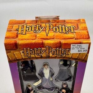 Highly detailed miniature ornaments featuring Harry Potter, Hermione Granger, Headmaster Dumbledore, Professor Severus Snape and Ron Weasley.