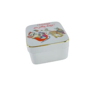 Enesco Holidays Are Jolly Days Trinket Box 1984 Porcelain A Christmas Keepsake