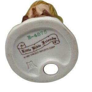This 1981 Enesco Little Bible Friends porcelain figurine (E-4875) features Lucas in a prayer pose. Expertly hand-painted with soft hues, it stands as a beautiful collector’s piece.
