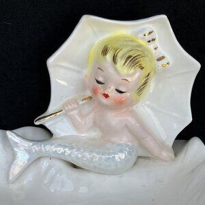 enesco mermaid, mermaid soap dish, vintage enesco, mermaid wall plaques, ceramic mermaids, umbrella mermaids, mcm mermaids, ceramic mermaid,