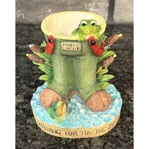 Enesco Moose Creek Crossing “Wading For the Big One” Waders Vase 1995 Frogs