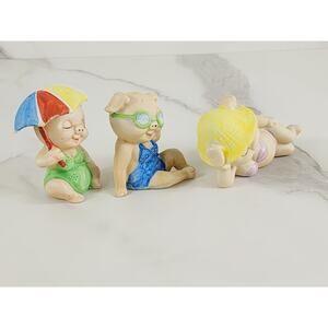 Enesco Pigs in Bikinis Mini Piggy Piglet Figurine 3" Ceramic 80s Pig Lover x3