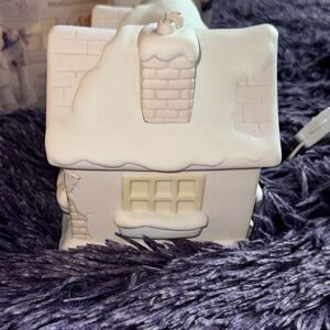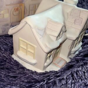 Charming porcelain night-light shaped like a cozy house. Soft glow for a warm ambiance. Beautiful holiday decor.
