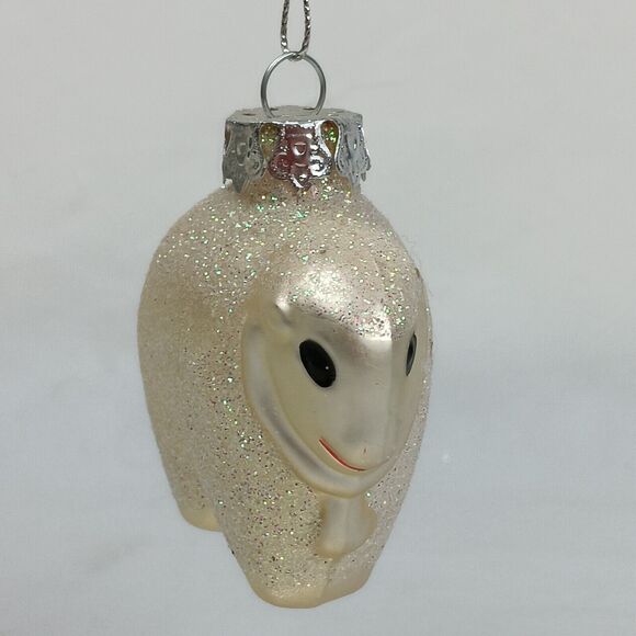 Enesco Standing Glitter Sheep Ornament Blown Glass Silver Sparkle Festive