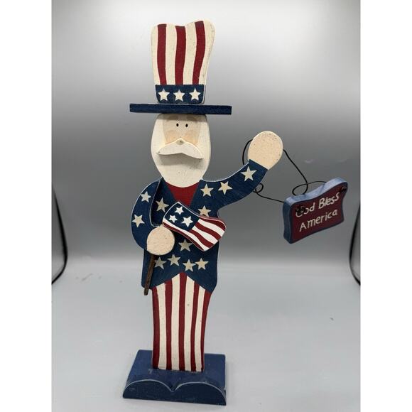 Enesco Uncle Sam Patriotic Wooden Figurine God Bless America USA 13”