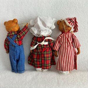 Enesco VTG Christmas Porcelain 3 Bears Dolls Mama, Papa Baby Ornaments