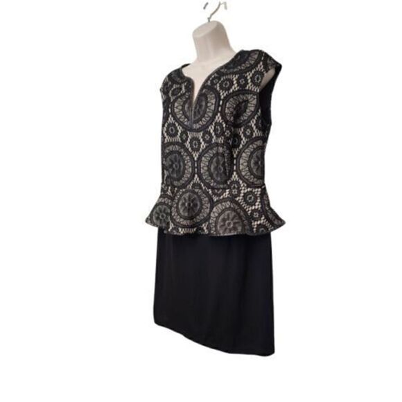 Enfocus Black Floral Lace Panel Back Zipper Sleeveless Stretch Peplum Dr…