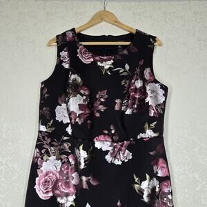 Enfocus High Low Maxi Sheath Dress 14W Black Pink Floral Rose Sleeveless Evening