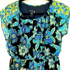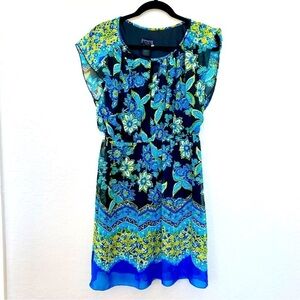 Enfocus Mini Dress in Green, Yellow and Black, size 12