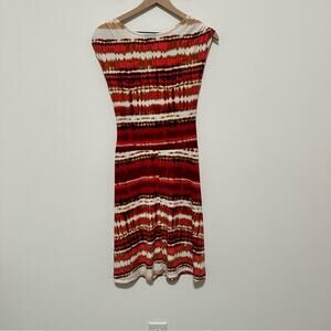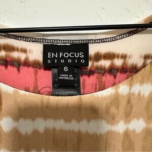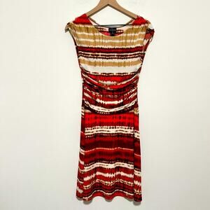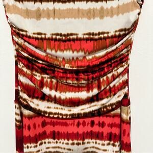 Features: orange, brown, white, sleeveless, ruched shoulder