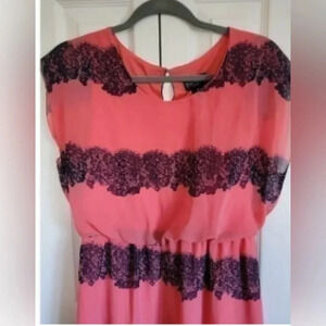 Enfocus Studio 10 Women's Dress Fit Flare Peach Lace Design Scoop Neck Size 10
