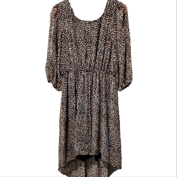 Animal print midi dress. Double layer. sleeves with openings. High low skirt. Elastic waist. Ser pictures for details.